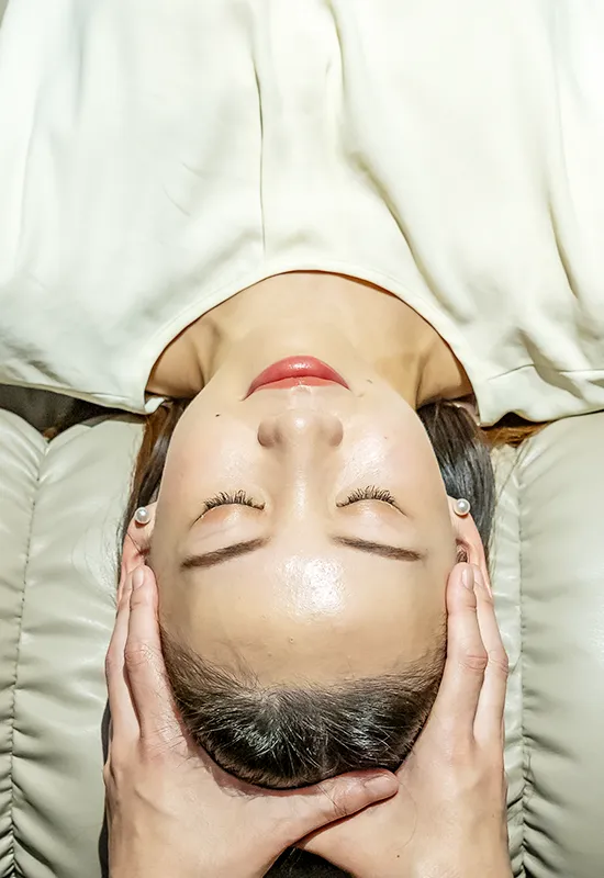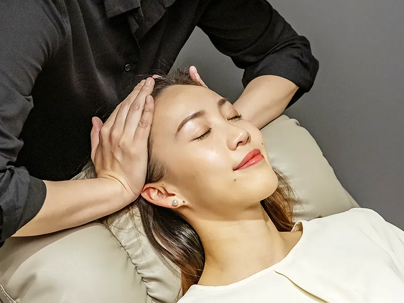 長時間のスマホ使用などが原因で、多くの現代人を悩ませる「眼精疲労」。頭皮や首のコリ、目の周りをていねいにほぐすことで血流を促進し、その辛さをやわらげます。頭痛や肩こりにお悩みの方にもオススメです。